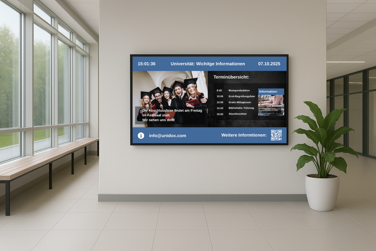 Digital Signage für Bildungseinrichtungen – informieren, orientieren, Lernen unterstützen.